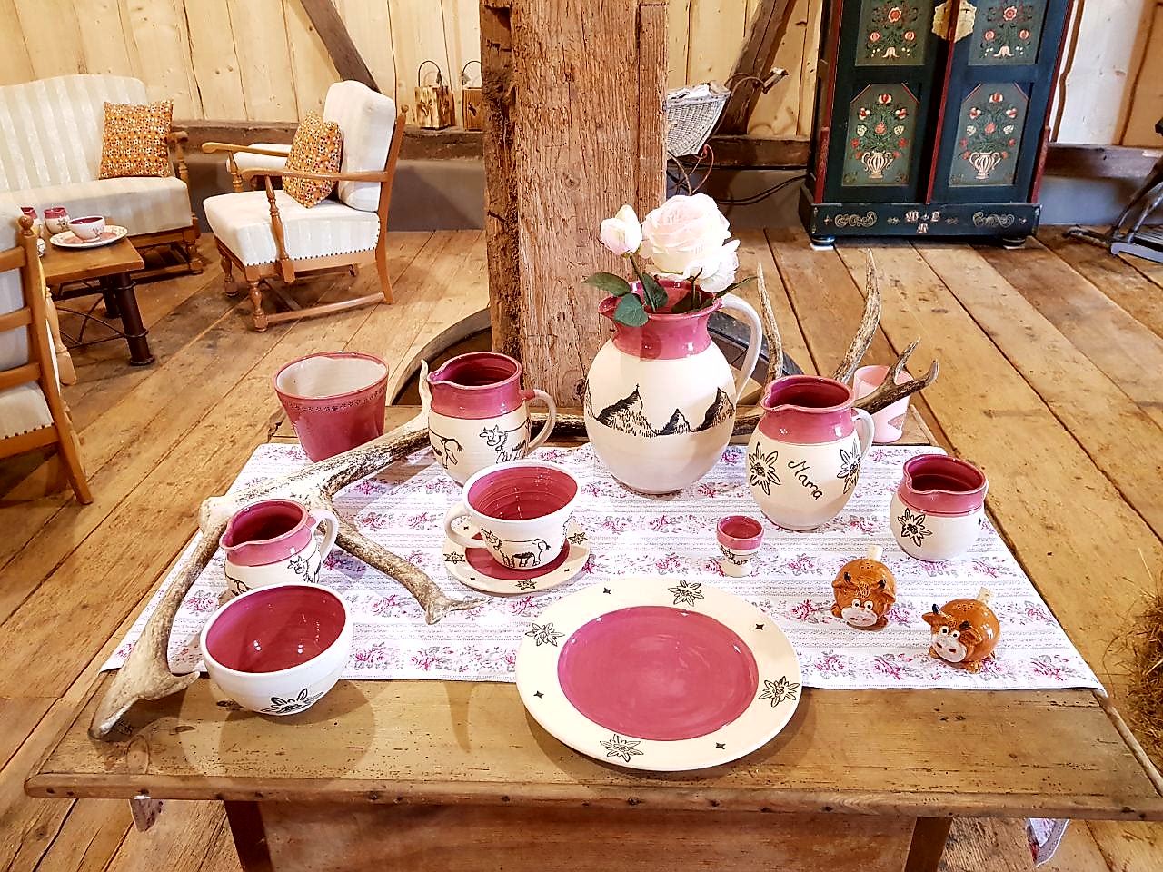 In der ehemaligen Tenne können Sie die Ausstellung unserer Töpferin bestaunen.